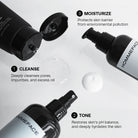 This 3-step daily skincare kit deeply–cleanses pores to remove excess oil, sweat, and impurities, replenishes moisture loss, soothes razor burn, bumps, and other minor irritations from shaving. It provides long-lasting hydration with a shine-free finish that quickly absorbs into skin.