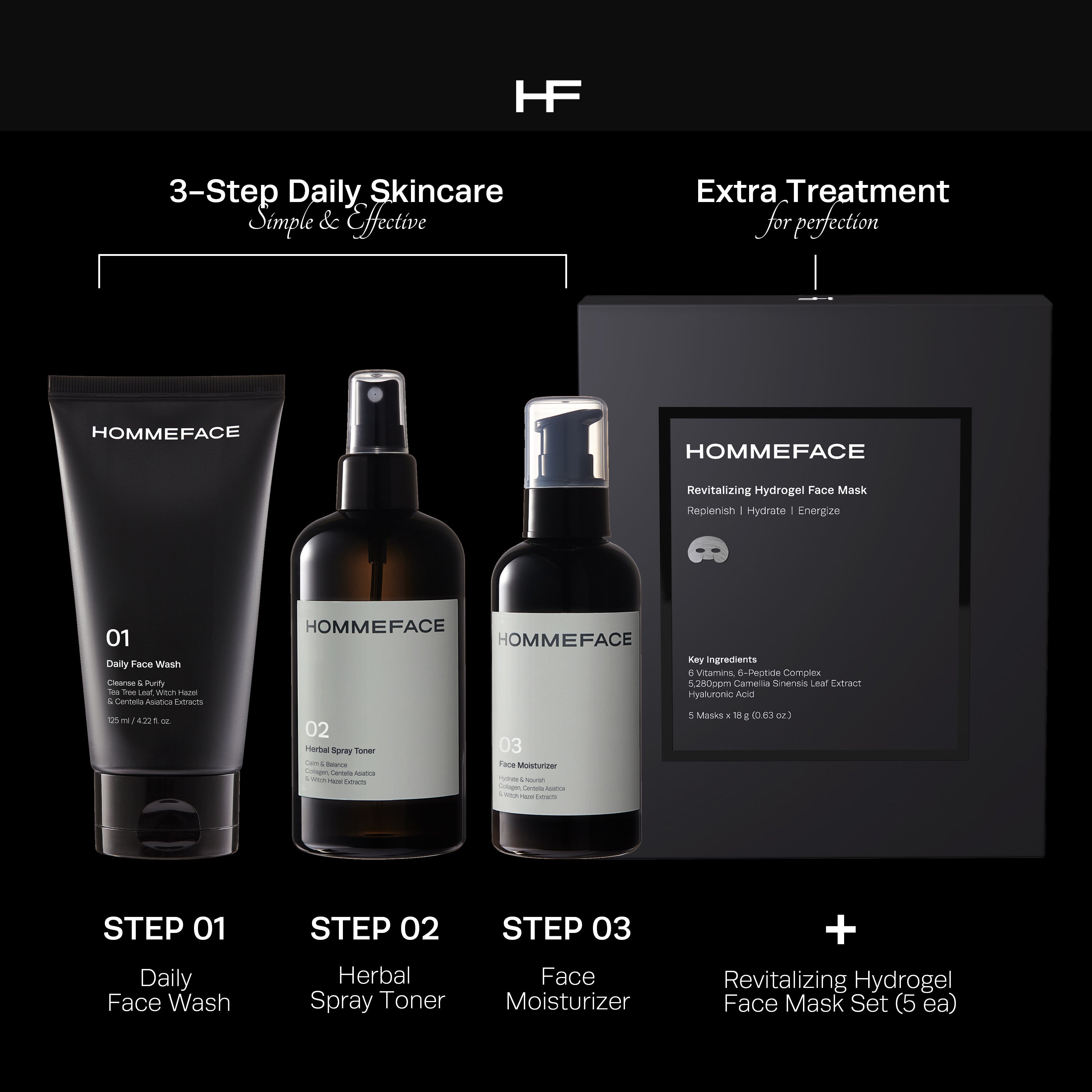 Achieve next-level radiance by adding facial sheet masks to your daily regimen. Each product is numbered to indicate the application step for a hassle-free experience. The premium hydrogel masks are beard-friendly and sized up for maximum coverage. For all skin types.
