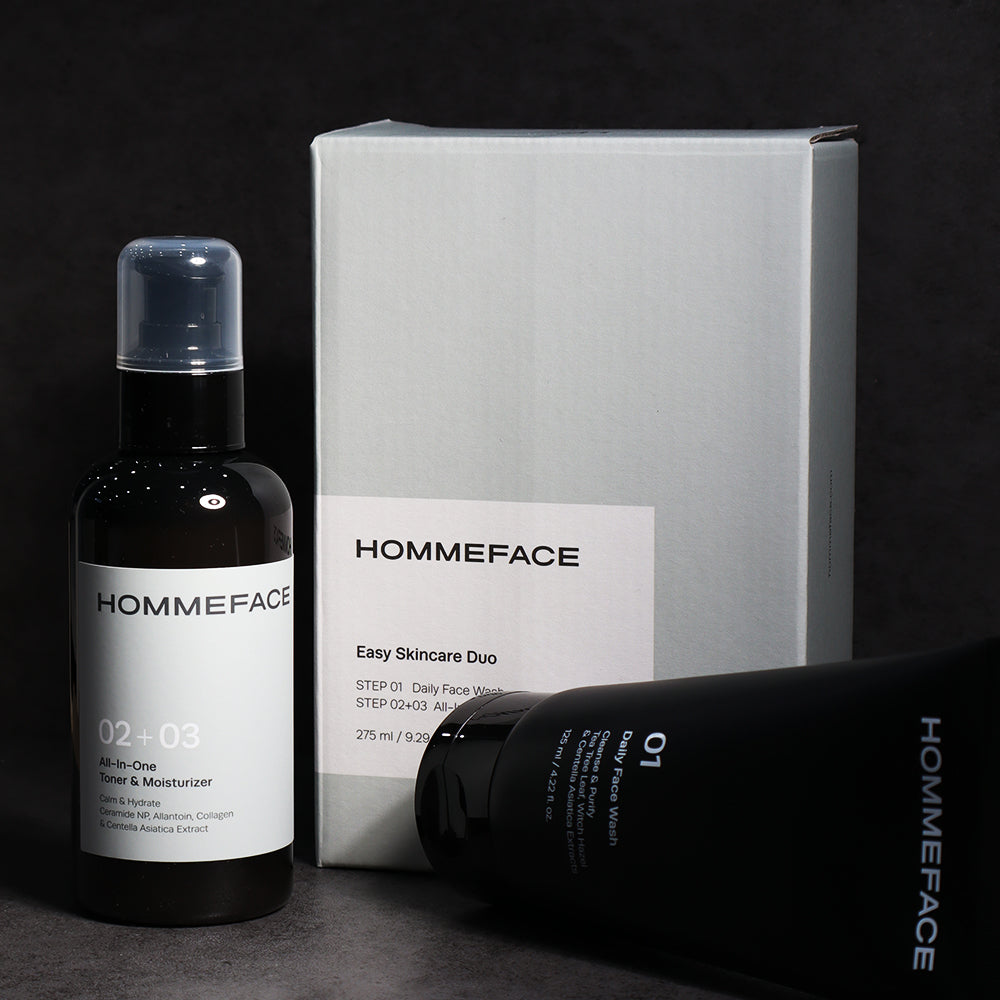 The Easy Skincare Duo is formulated with Collagen, Ceramide, and Centella Asiatica extract for maintaining moisture balance, removing excess oil, and reducing the appearance of enlarged pores. Hyaluronic Acid intensely hydrates, reducing the look of fine lines and wrinkles.