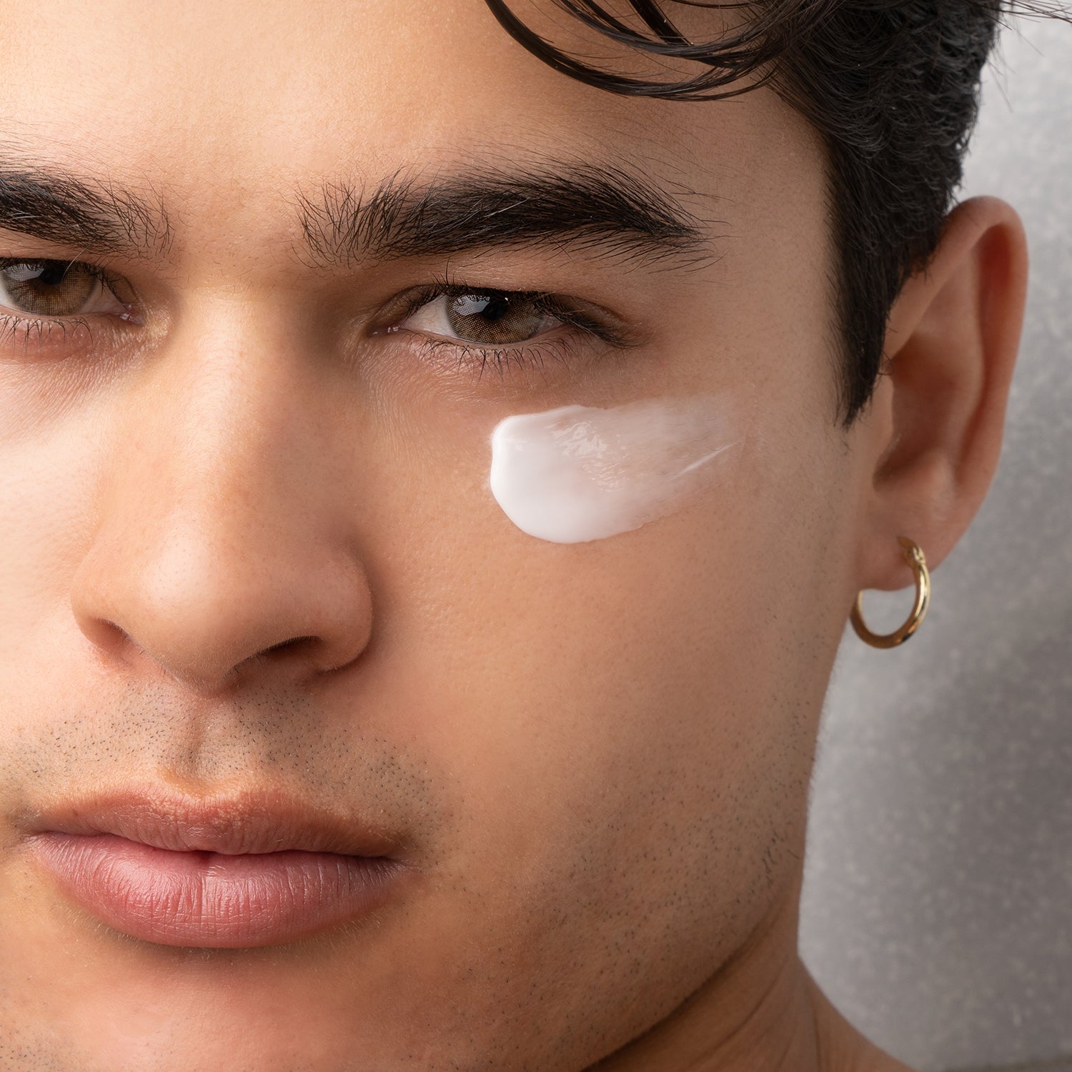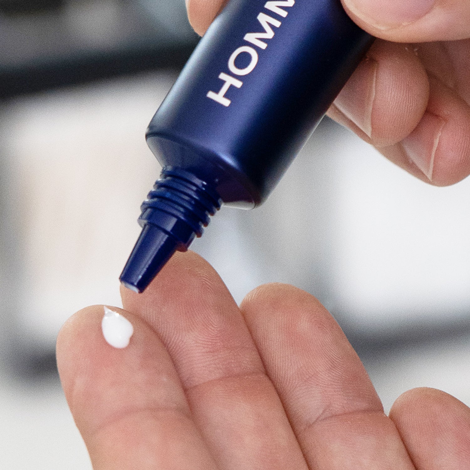 On a fingertip, squeeze a small amount and dab under each eye area. Gently smooth and tap into skin.